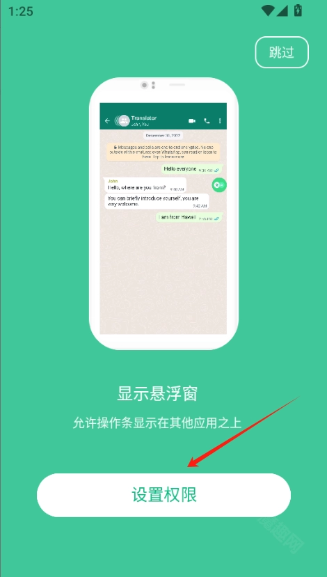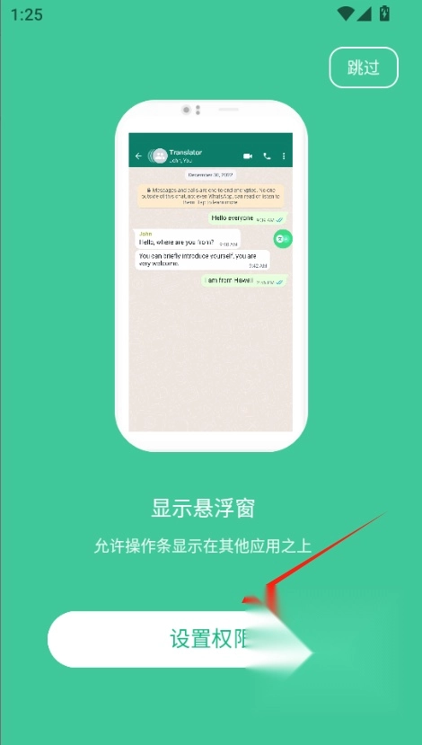 要设置悬浮球功能,首先需要开启相应权限,允许操作条在其他应用界面上方显示。