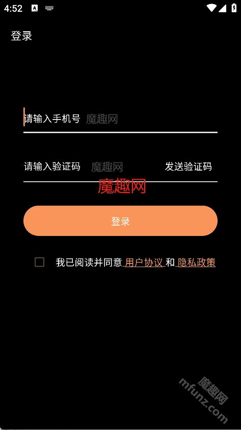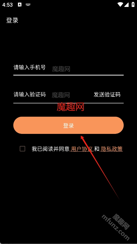 2、在登录界面输入手机号和验证码