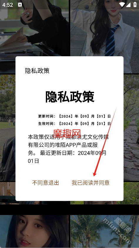1、打开手机上的堆陌,选择同意进入软件