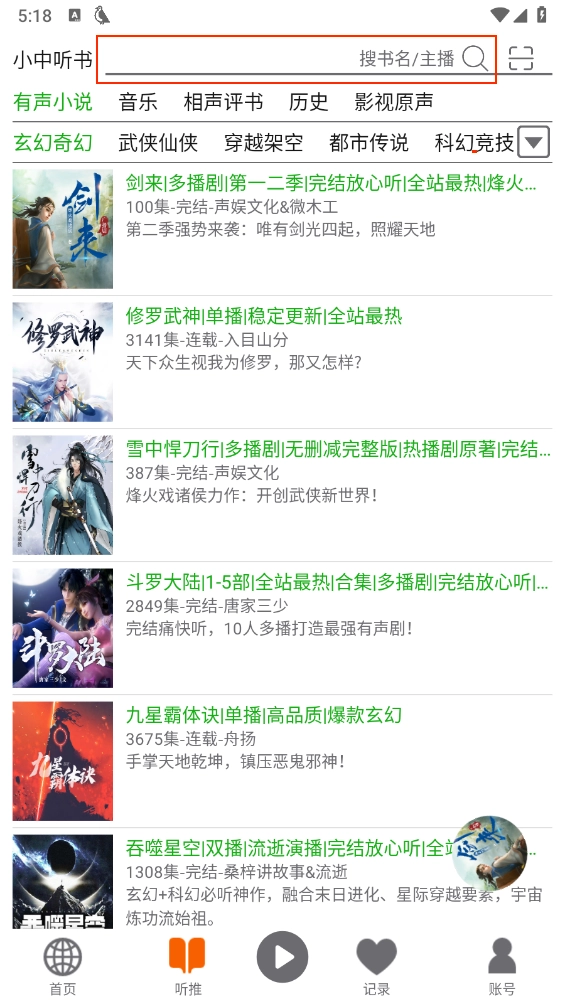 2、“听推”板块汇聚了海量小说资源,你可以一键挑选心仪的作品,也能直接搜索自己喜欢的小说。