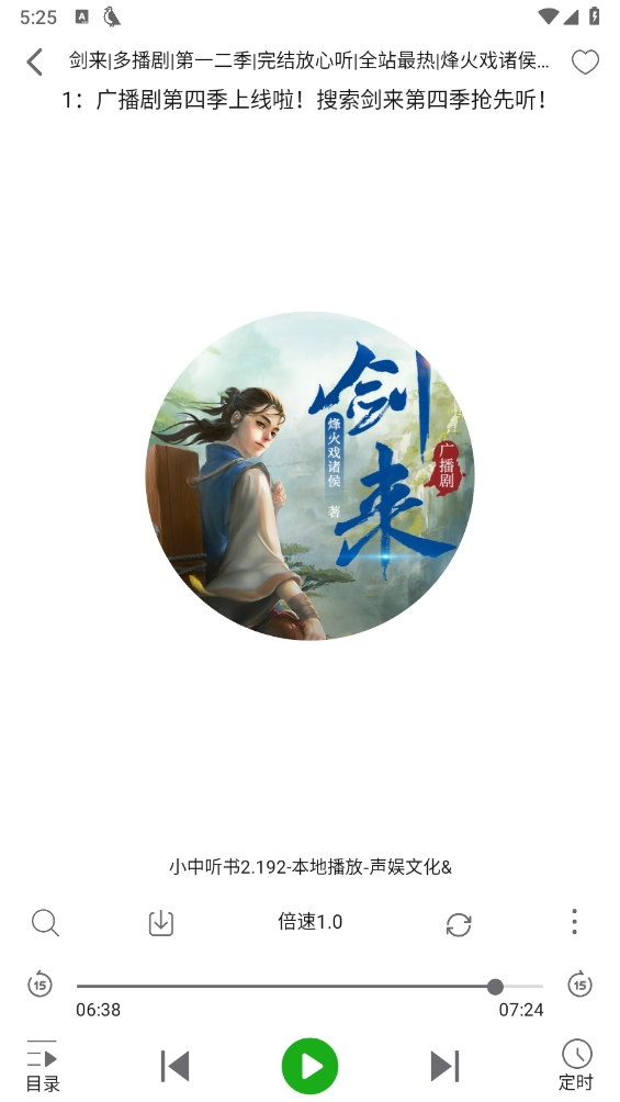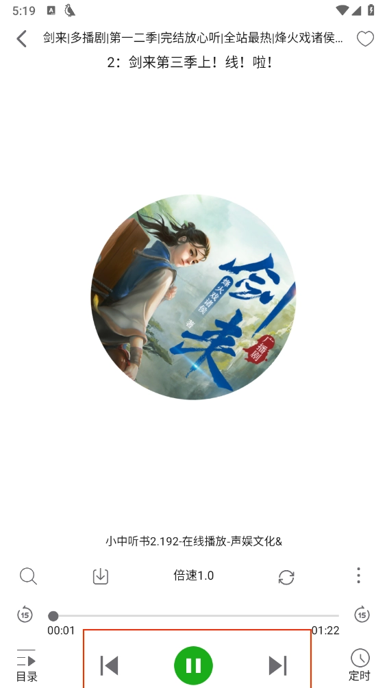 4、如图所示,即可开启听书体验,还能进行定时、收藏等操作。