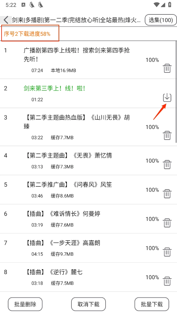 2、找到需要的章节后,点击右侧的对应图标就行,也支持批量操作。