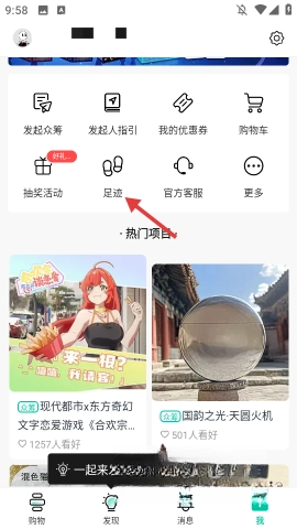 2、进入个人主页后,点击【足迹】选项,即可进入我的足迹页面。