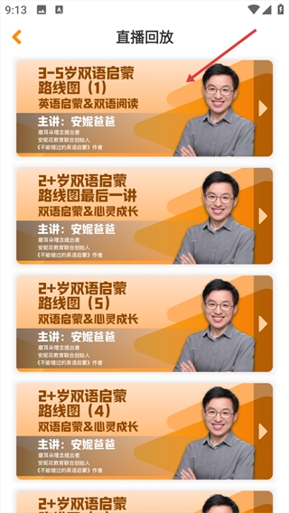 1、在【首页】找到【直播回放】板块并点击,即可进入直播回放的课程列表页面。