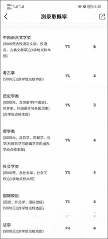 8、查看该校所有专业的录取数据和概率。