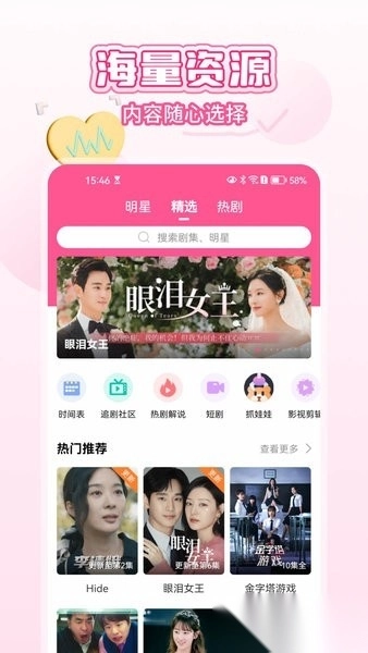 这里有新鲜热门的韩剧汇总,是追剧的好帮手,被不少韩剧网站推荐,很受韩剧迷喜爱。应用会及时更新热门韩剧信息,第一时间通知你新剧集上线。它整合了多个主流韩剧平台的资源,像嘟嘟韩剧网、h9t韩剧网和133133韩剧网等都包含在内。