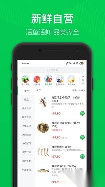 鲜活直达:水产区提供活鱼活虾等新鲜水产,配送过程中使用专业充氧包装确保鲜活。