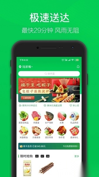 极速配送服务:可预约配送时段,承诺29分钟内准时送达,若超时必赔。