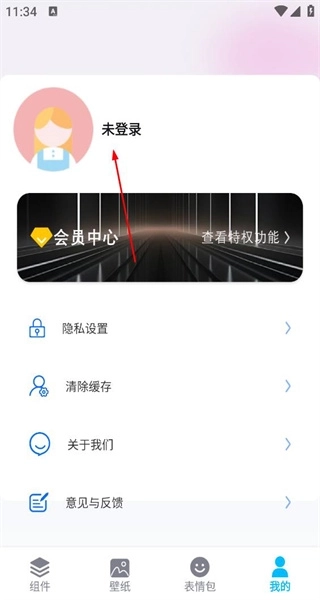 2、进入“我的”页面后,能看到页面显示未登录状态,同时还有会员中心、隐私设置等功能选项,点击未登录区域即可进入登录界面。
