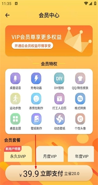 4、登录后进入会员中心页面,能看到VIP会员权益与各类特权,同时还有不同的会员套餐,可挑选套餐完成开通操作。