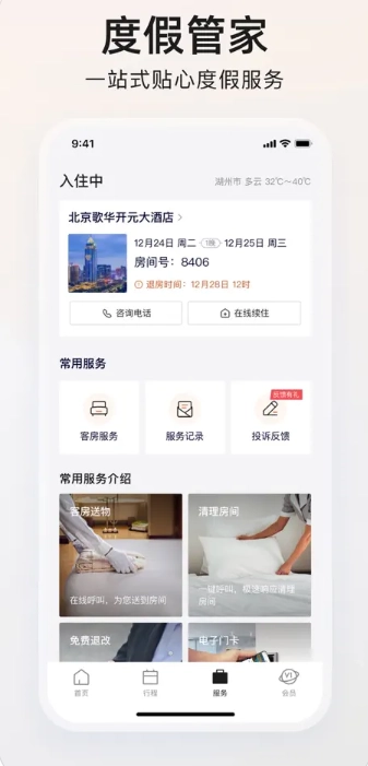 智能酒店预订服务:支持查询并预订全国范围内的多家酒店,入住时还能体验蓝牙开锁等智能化服务。