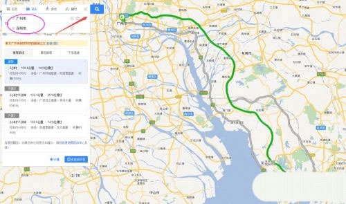接下来在下方输入出发地和目的地,就能查询两地之间的距离、费用以及所需时间了。