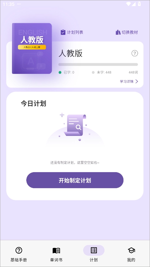 点击计划,制定学习计划,并每天提醒用户进行学习