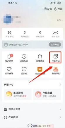 在“我的”页面中,找到并点击【作者专区】入口。
