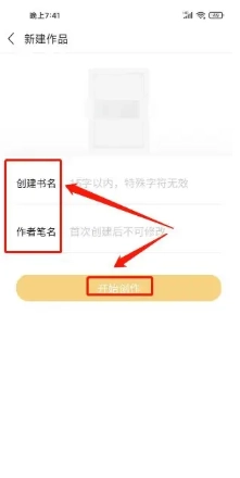 输入作品名称、作者笔名(可自定义)。