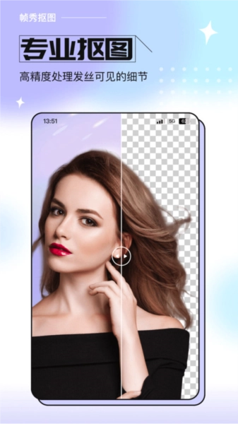 这款软件搭载了功能强劲的抠图工具,可对细节进行高精度处理,哪怕是发丝这样细微的部分也能呈现得十分清晰。