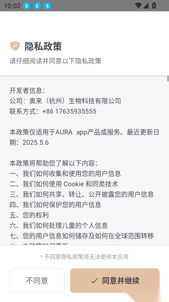 首先打开应用点击“同意并继续”按钮来进入中。