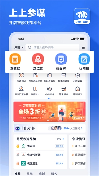 从选址、选品牌到找商铺、查数据,全流程都能覆盖,不需要额外工具辅助,创业筹备的各个环节无缝衔接,让创业者省心省力,能够专注于核心经营规划。