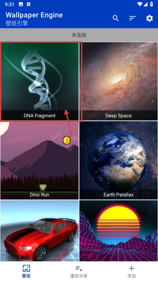 在排好序的壁纸列表中,点击DNA-Fragment这一壁纸条目,即可进入该壁纸的详情页面。