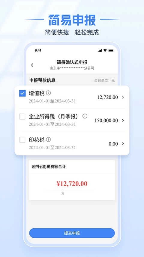2.借助“一键申报”功能,高效完成每月的税务申报工作。