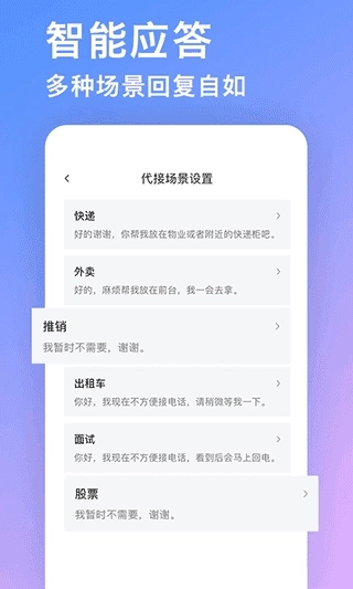 3.运用语音助手功能,当处于忙碌状态或不方便接听电话时,可自动对来电进行处理。