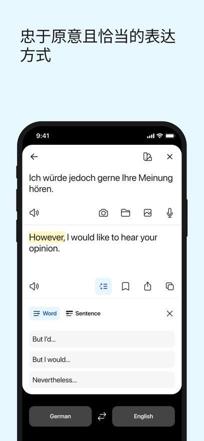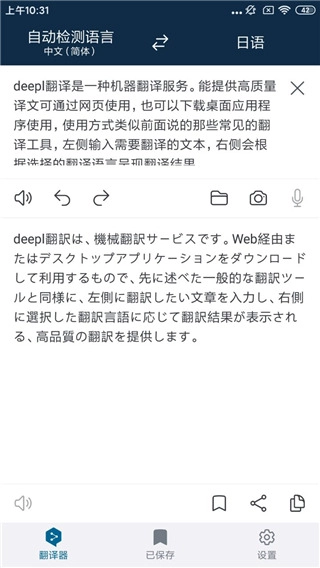 Deepl翻译器可翻译30多个国家和地区的语言,很适合旅游出行的用户。该软件支持离线互译,能让用户在国外与当地人顺畅交流。软件功能丰富,其中拍照识别功能,用户只需轻松拍摄不认识的文字,软件一键就能识别并快速转换成中文。