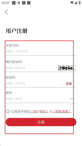 4、于用户注册页面,填入信息,勾选协议,随后点击“注册”,便可完成注册流程。