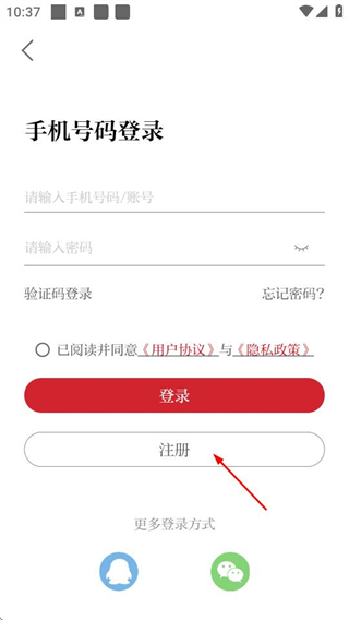 3、于登录界面处,点击注册按钮,随即进入用户注册页面。