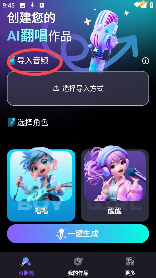 1. 安装完成后打开,接着点击首页的“导入音频”。