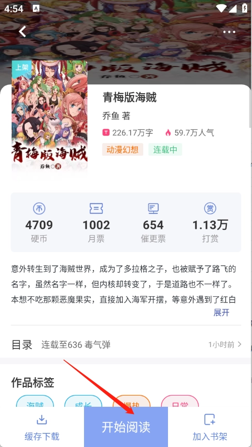 4、点开想看的小说进入到详情页,点击开始阅读。