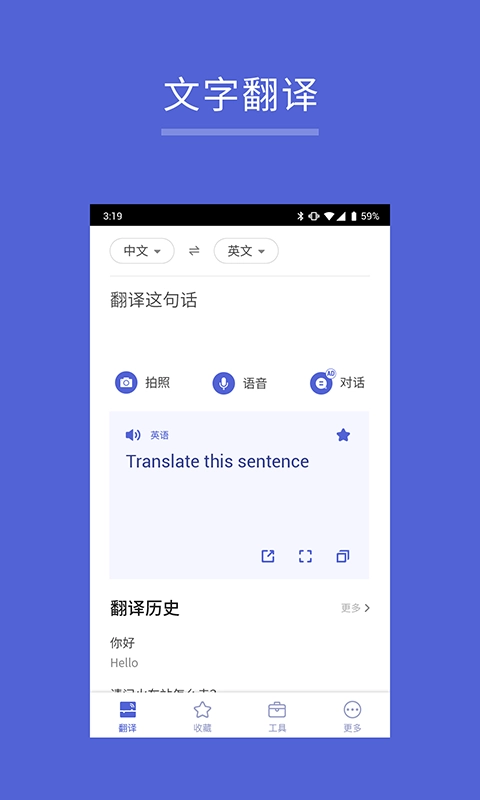 3、出国翻译王具备拍照翻译的功能,用户只要拍摄照片就能识别其中的文字并完成翻译,能轻松解决路标、菜单等场景下的翻译需求。