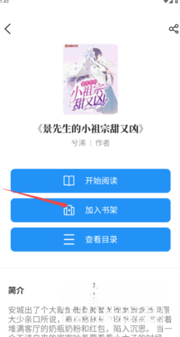 3、当寻得心仪的小说后,进入阅读界面,在该界面中有一个“加入书架”的选项,只需轻轻点击一下,钟爱的作品便会被保存至书架之上。