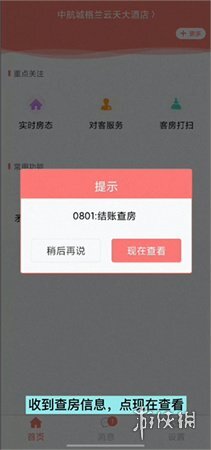 2、倘若客人尚处于住宿阶段,在接到查房通知之后,请点击“现在查看”。