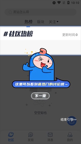 2、热榜是此次更新的一大特色,同时也十分实用,它的具体位置在社区栏目的左上角。