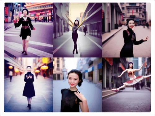 接下来,只使用头像显得有些单调,我们可以为人物增添动作(ACTION)元素。例如,在现代都市的街道上跳舞(danceinastreetofmoderncity),这样就同时融入了动作与背景设定。