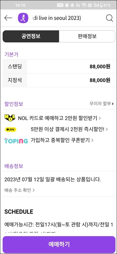 5、点击购买예매하기。