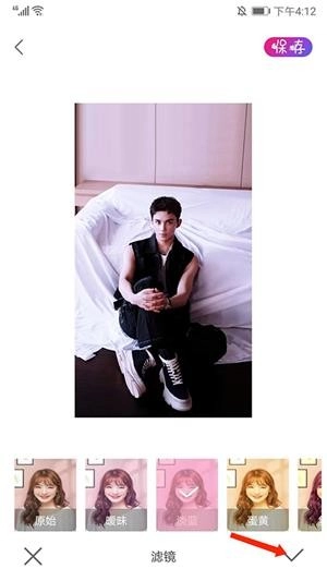 4、如图所示,当前照片已呈现蓝色滤镜效果,点击右下角的【打勾】图标,就能保存该蓝色滤镜效果。