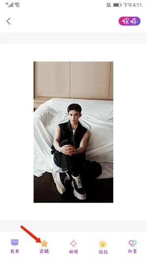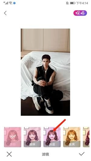 3、点击下方的【滤镜】选项,接着滑动底部的滤镜栏,就能看到原始、暧昧、淡蓝、蛋黄等多种风格的滤镜,之后选择【淡蓝】滤镜即可。