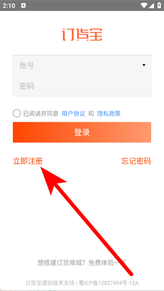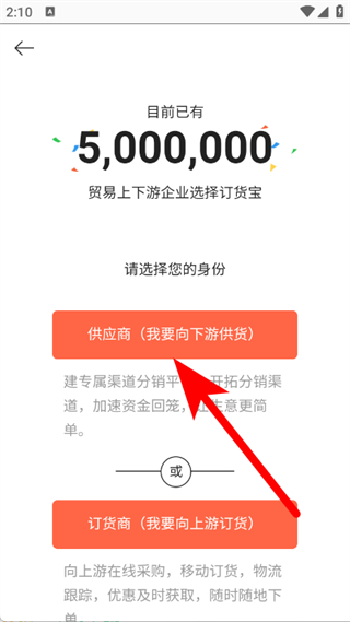 1. 开启订货宝,点击“立即注册”,进入身份选择界面。