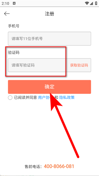 4、填入验证码,勾选同意选项,接着点击确定按钮,即可完成账号注册。