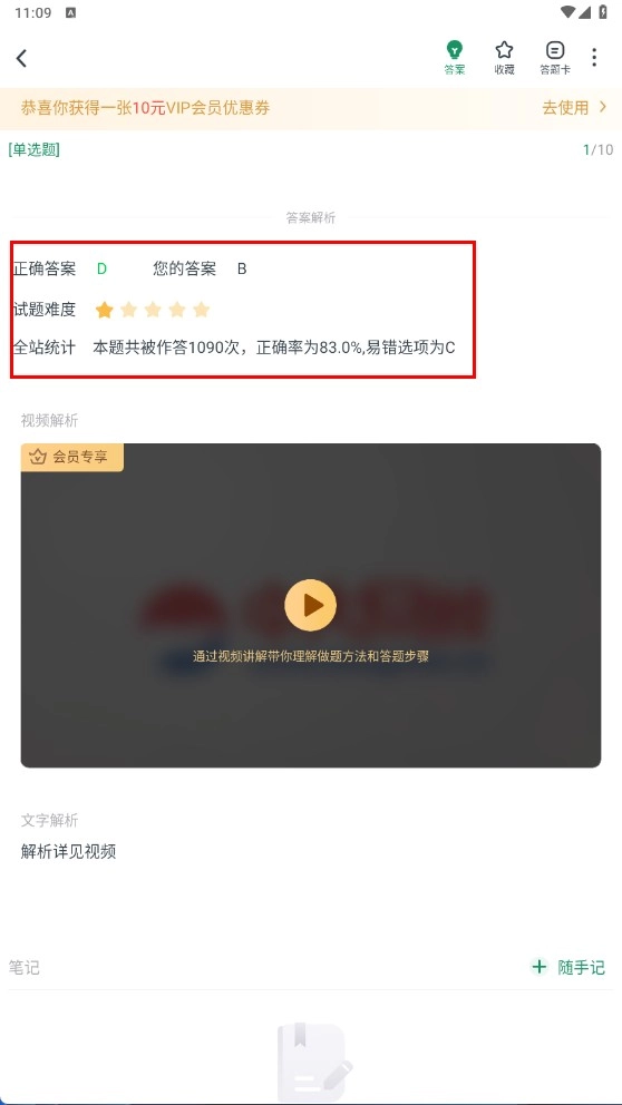 提交答案后,能够查看【正确答案】、【试题难度】以及全站统计等相关信息,从而了解自己的答题情况。