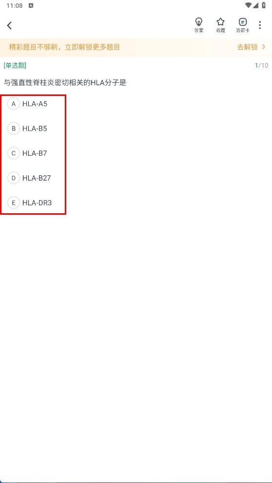 进入题目页面后,查看题目内容并选择对应的答案,例如本题可以选择D选项。
