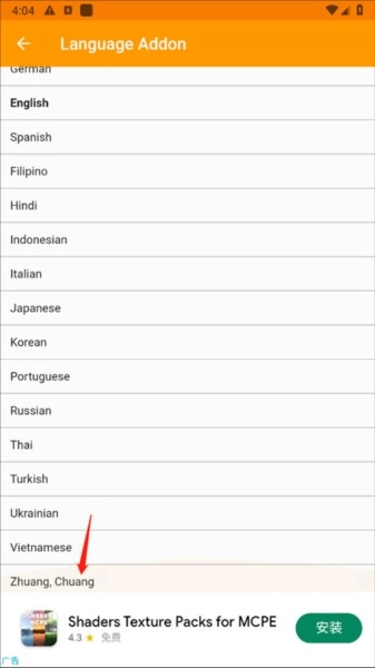 继续拖动到最底部选择语言,像下面的图片展示的那样,挑选简体中文。