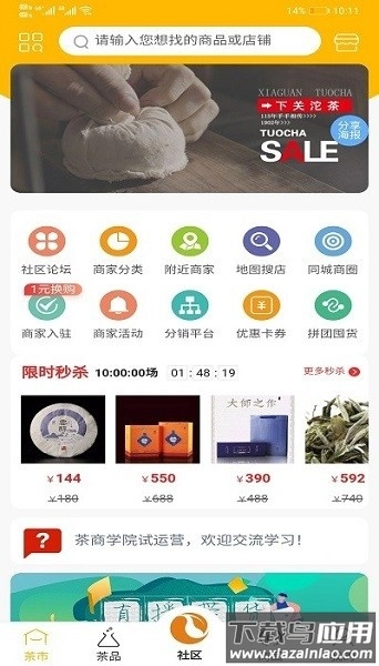 1. 打开首页后浏览商家分类,根据自身需求查找茶叶类或茶器类店铺。