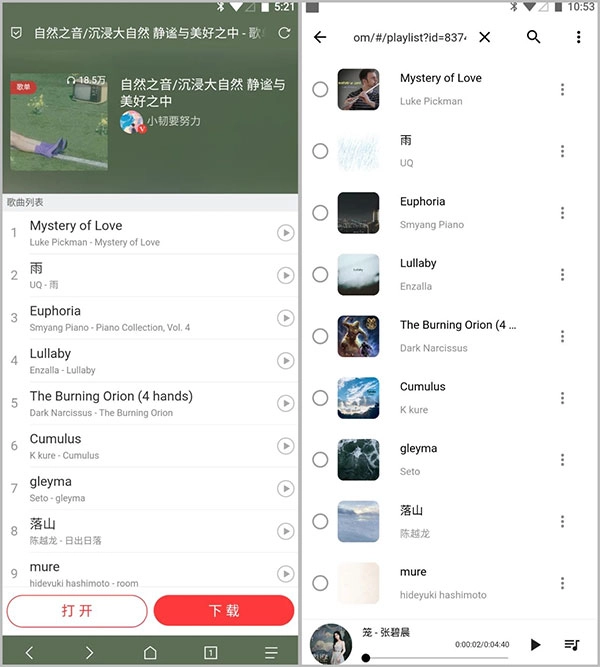 五音助手App最突出的地方在于它的功能,它汇总了各大音乐平台首页推荐的歌单,无论是纯音乐、古风类型,还是各平台用户自行上传的音乐合集,都能直接获取。