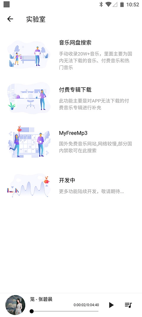 更厉害的是它还具备实验室功能,要是遇到在各大音乐网站搜不到的歌曲,还能连接国内外以及五音助手自家的音乐网盘,不管是国内还是国外的歌曲,再也不用担心版权问题导致无法播放了。