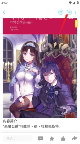 1、搜索你喜欢阅读的小说进入,点击右上角阅。