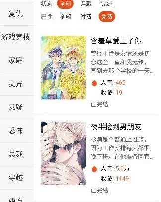 3、漫画资源依据题材进行分区,借助标签能够快速查找所需漫画。