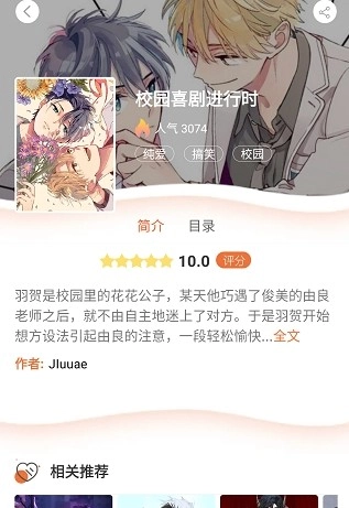 4、当你找到心仪的漫画后,点击进入其详情页,就能看到漫画的简介、作者信息、评分等内容。要是你对这部漫画感兴趣,还可以点击收藏按钮,把它加入你的收藏夹,这样日后阅读起来会更方便。