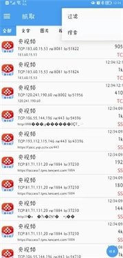 6、启动视频播放后,抓包精灵会采集到大量数据,鉴于数据量较大,我们需要通过过滤操作来筛选出所需内容。此时点击界面右上角的三个点图标,在弹出的选项中选择“过滤”功能即可。